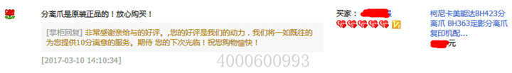 從截圖可以看到,馮先生的評論是:分離爪是原裝正品的!放心購買!