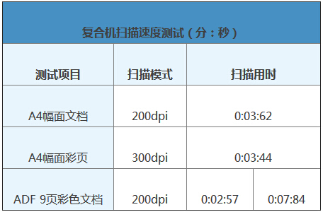 單頁掃描不論黑白還是彩色用時不到4秒,非常快。而用ADF掃描9頁彩頁僅用時7秒84,換算得到速度為113ppm,充分展現(xiàn)出bizhub C658風(fēng)馳電掣的掃描性能。