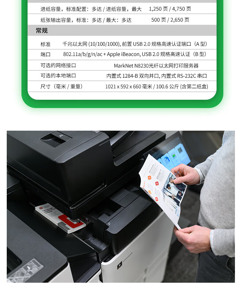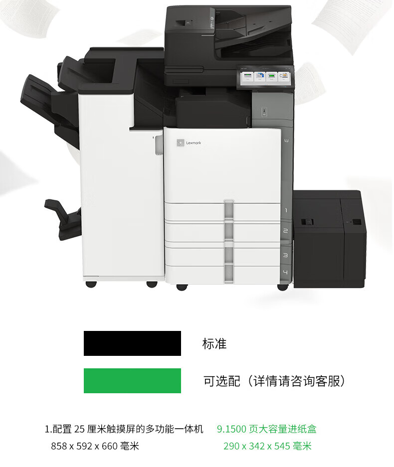 • 利盟(Lexmark)CX962se 彩色激光多功能數碼復合機價格圖片參數 45頁/分鐘 快速裝訂成冊